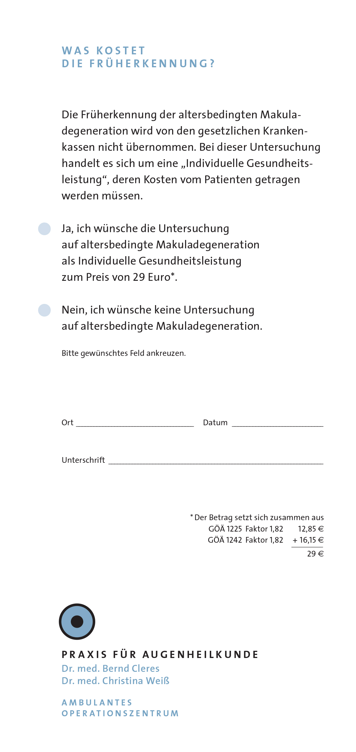 Praxis für Augenheilkunde Dr. med. Bernd CleresDr. med. Christina Weiß Ophthalmologists, Cologne Visual identity